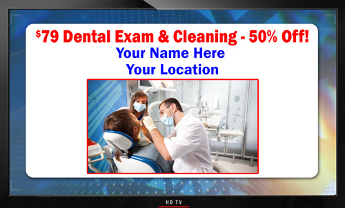 Below are ideas for offers to make in your tv commercials. To use one for your ad, on the sign up page for your city insert the offer you want (you can change the price and wording). You can also make your own offer.Exam and Cleaning Discount